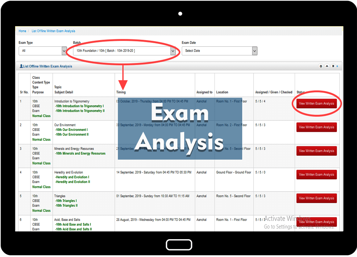 Students can view schedule, time table, detailed analysis for online exams, notes, Written exam papers analysis, Self Study achievers, SMS, Course Progress, Self Learning and many more from one portal.